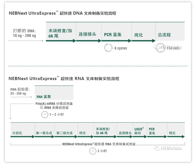 精(jīng)簡流程,速度出衆——NEBNext UltraExpress™ 超快速 DNA 和 RNA 文(wén)庫制備試劑盒新(xīn)品上市