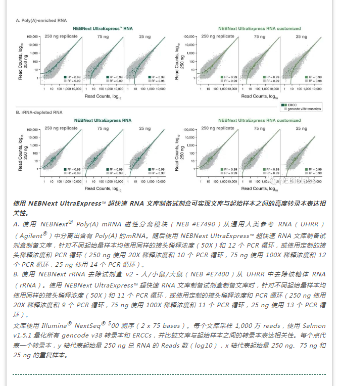 RNA 文(wén)庫制備:3 小(xiǎo)時(即使與 poly(A) 富集或 rRNA 去除結合使用(yòng),仍可(kě)以在一天内完成文(wén)庫制備)
